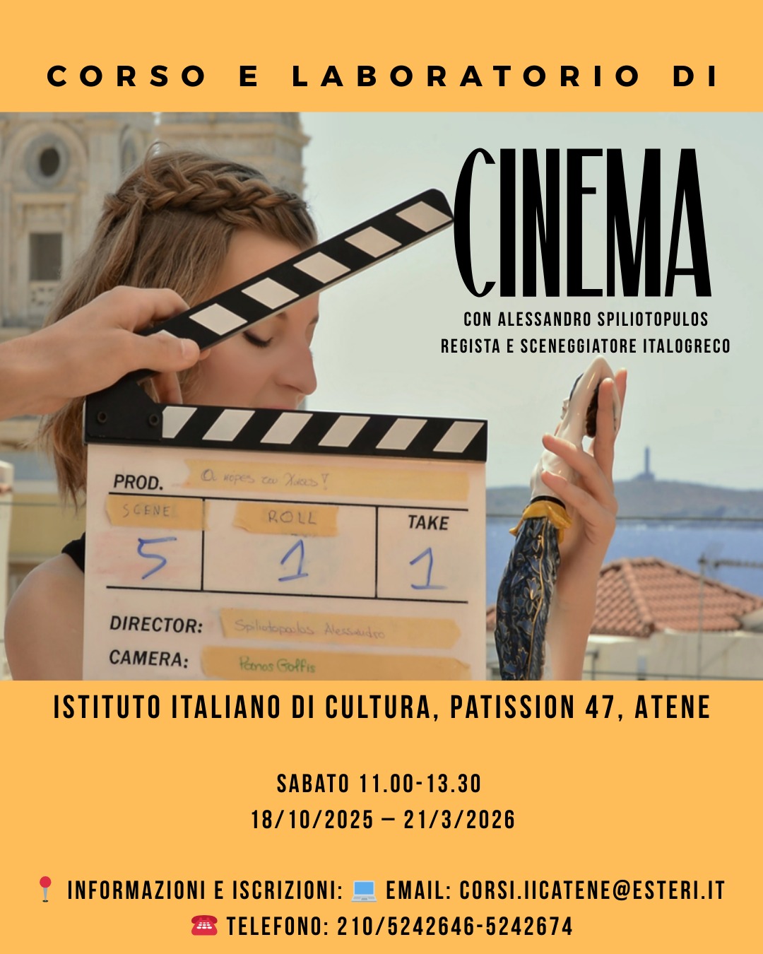 Σας ανακοινώνουμε με χαρά ότι φέτος, το Ιταλικό Μορφωτικό Ινστιτούτο προσφέρει, στο πρόγραμμα μαθημάτων, και το εργαστήριο κινηματογραφικής! Πρόκειται για...