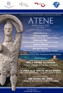 La Fondazione Mont’e Prama è lieta di invitarvi alla conferenza Le suggestioni dei giganti nell’antica Grecia Martedì 16 Dicembre – ore 18:00 Istituto Italiano di Cultura Ingresso libero previa registrazione utilizzando il modulo qui sotto Saluti istituzionali: Cristina Caputo, Primo Consigliere dell’Ambasciata d’Italia ad Atene Francesco Neri, Direttore dell’Istituto Italiano di Cultura di […]
